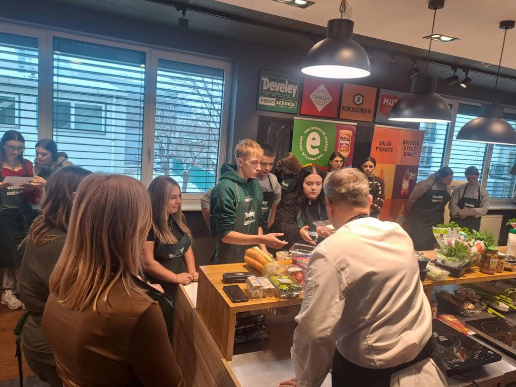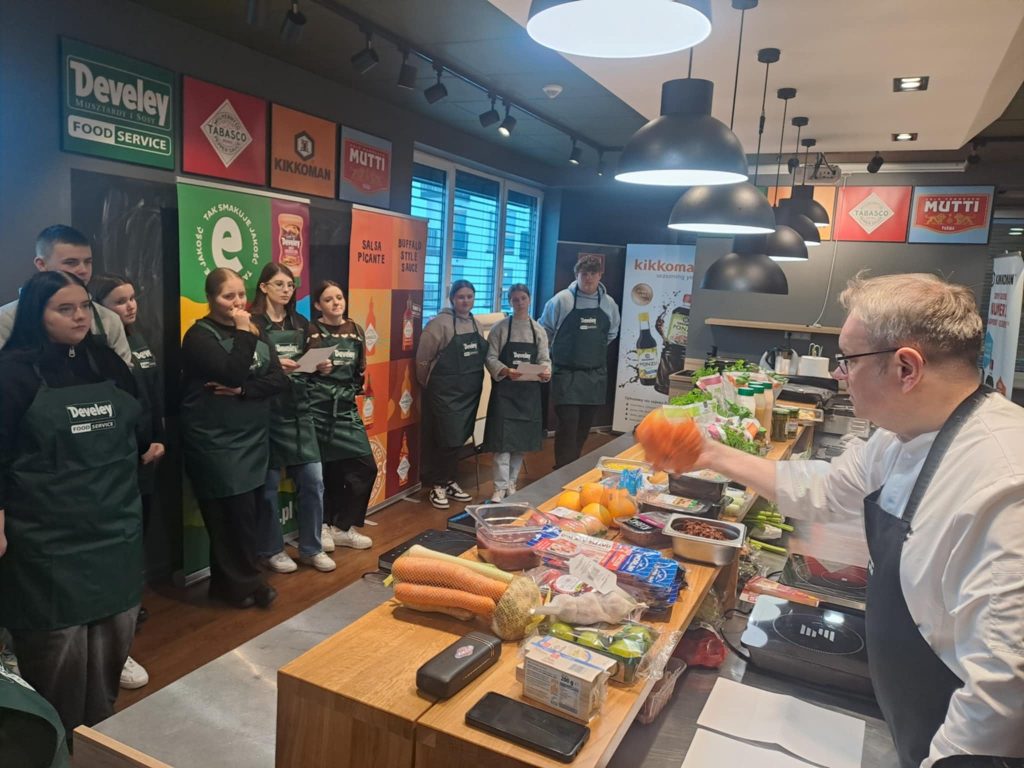 Na zaproszenie Pana Dyrektora Develey Tomasza Lasoty uczniowie CKZiU uczestniczyli w warsztatach kulinarnych Culinary Innovation Studio Develey w Warszawie. Uczniowie praktycznie wykonywali potrawy kuchni obcych narodów. Wszyscy na koniec wspólnie degustowali wykonane dania. Warsztaty przeprowadził Pan Gerard Rytter.