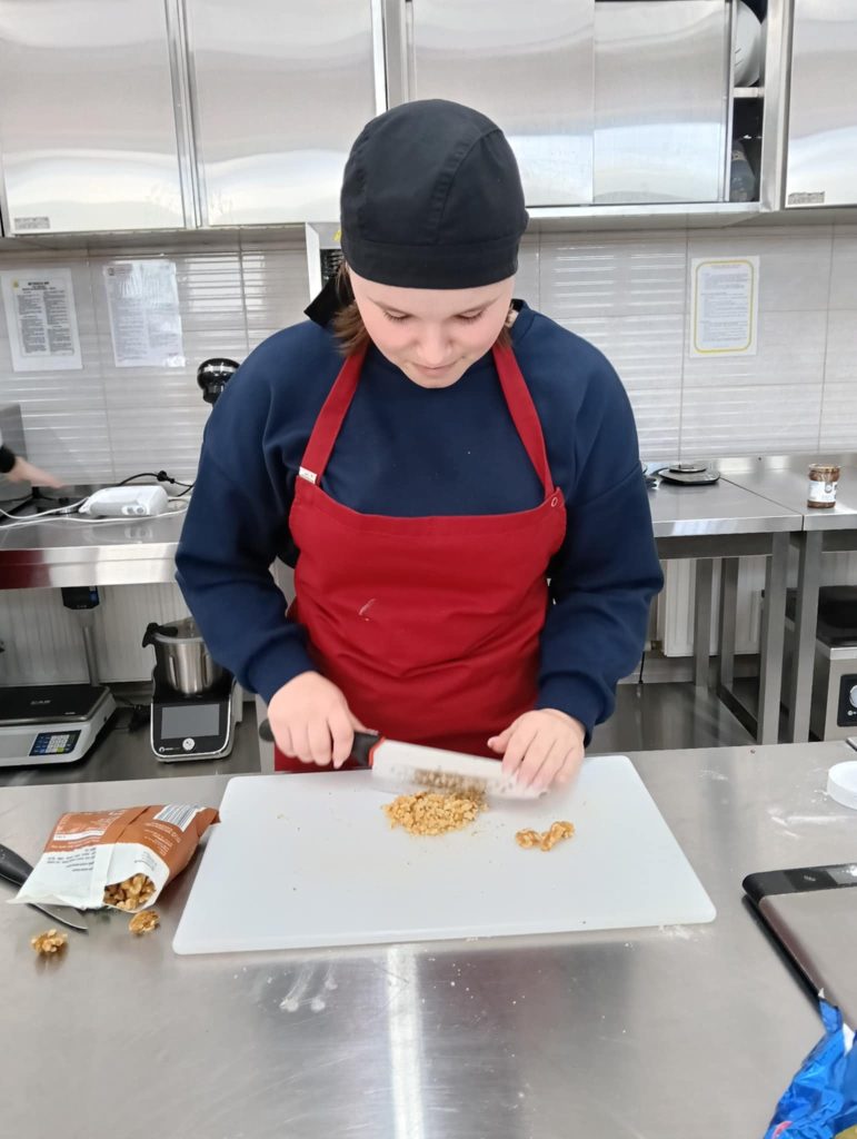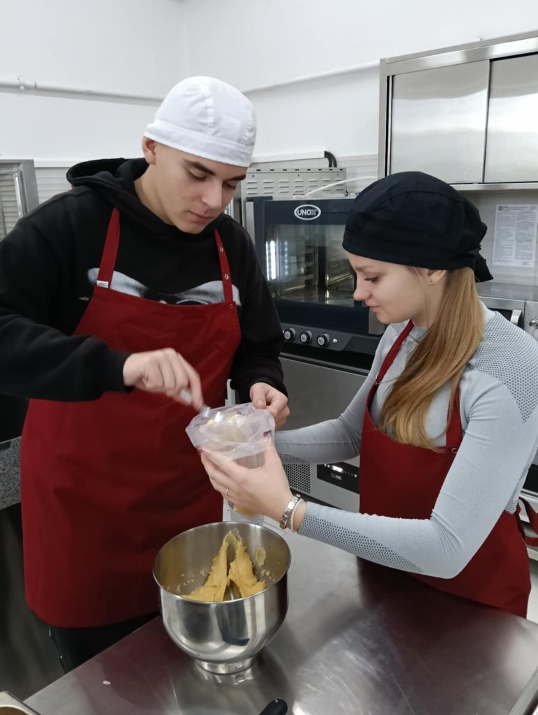 Uczniowie podczas zajęć prowadzonych w ramach projektu „Nasza wiedza- Twoje umiejętności”- zadanie 9 zajęcia kulinarne z wykorzystaniem nowoczesnego sprzętu. Nauczycielem prowadzącym jest Pani Małgorzata Krysiak.